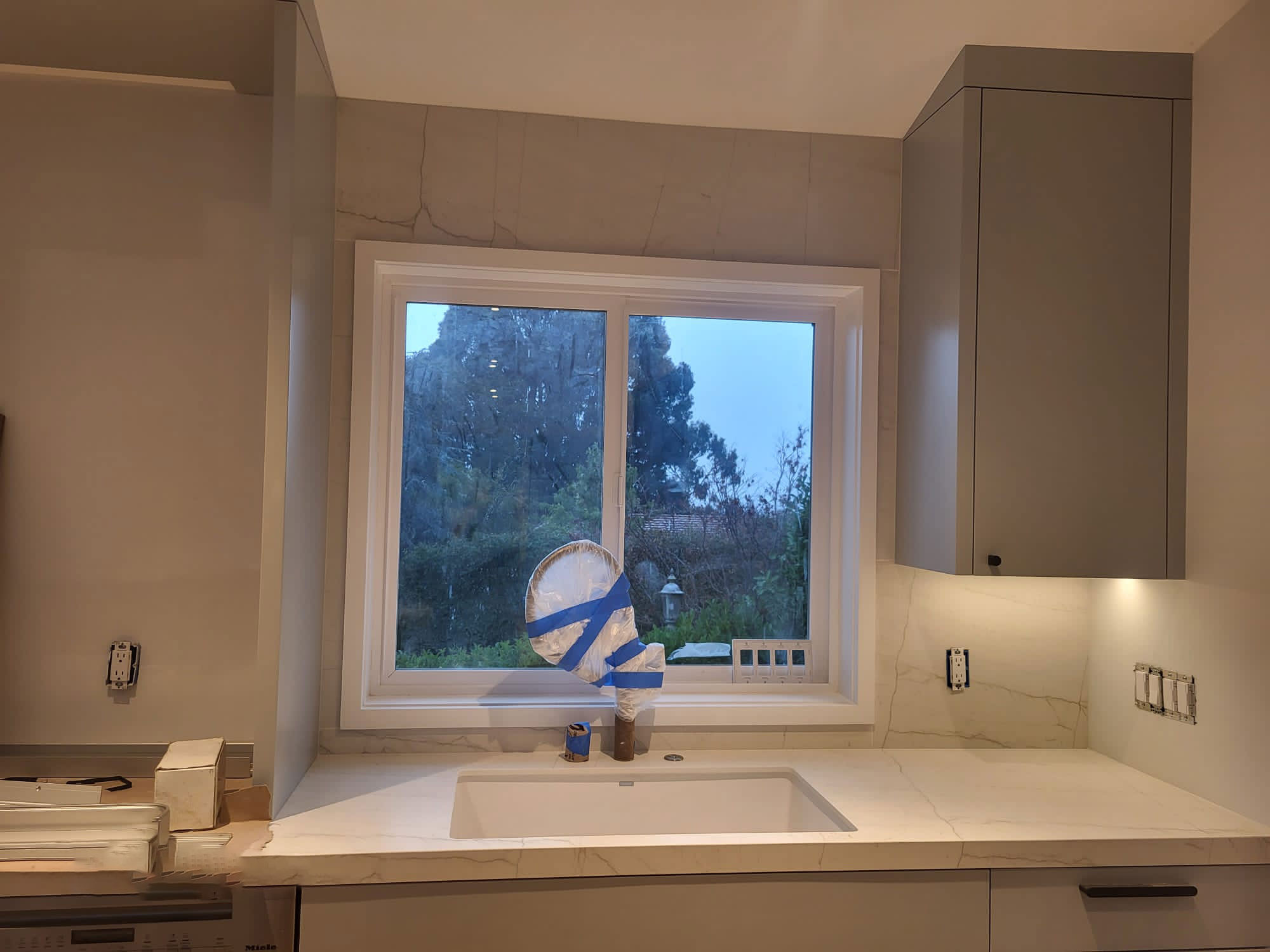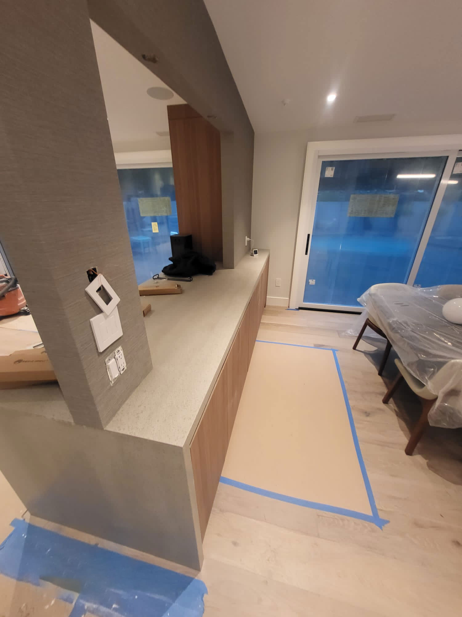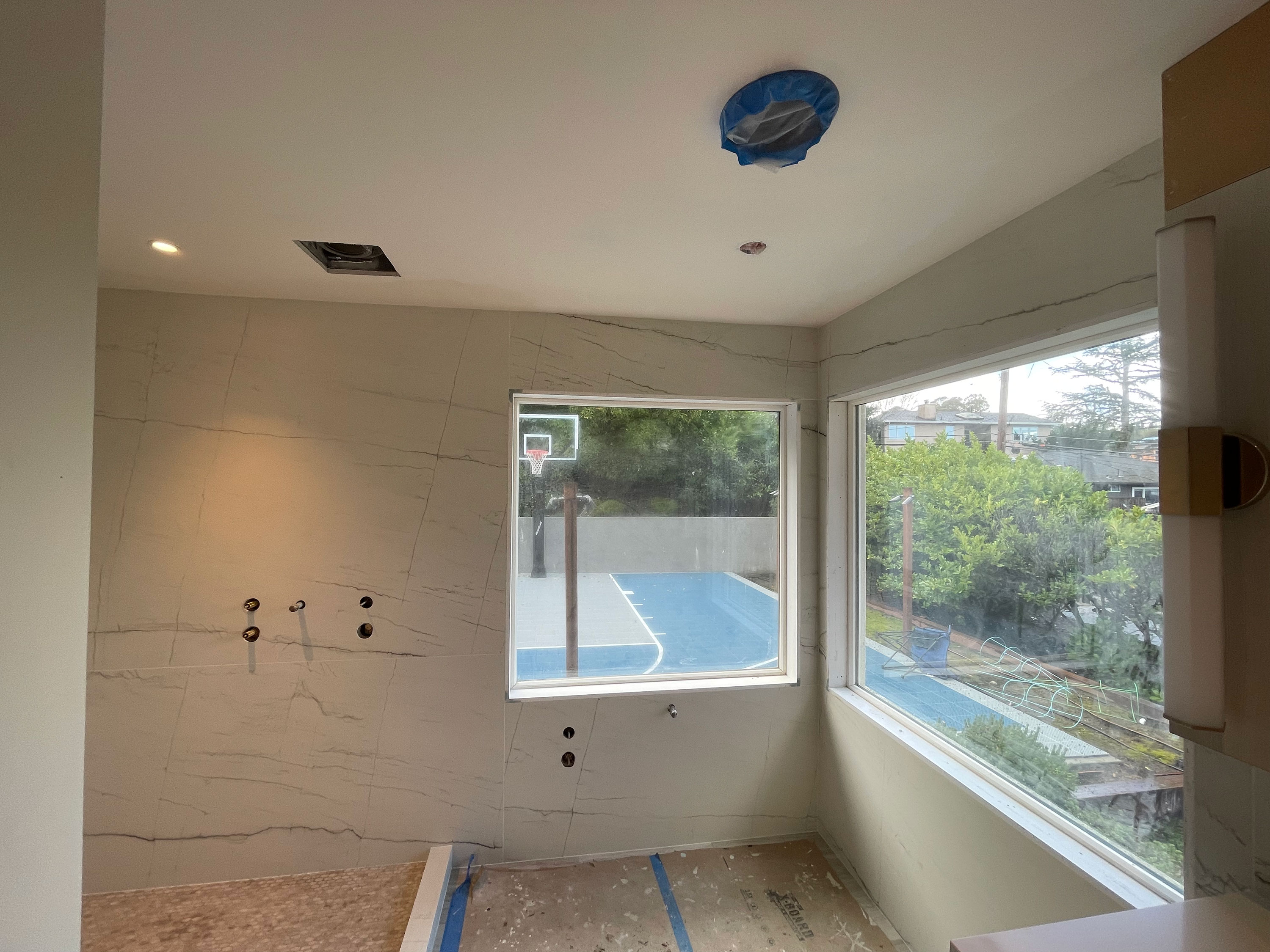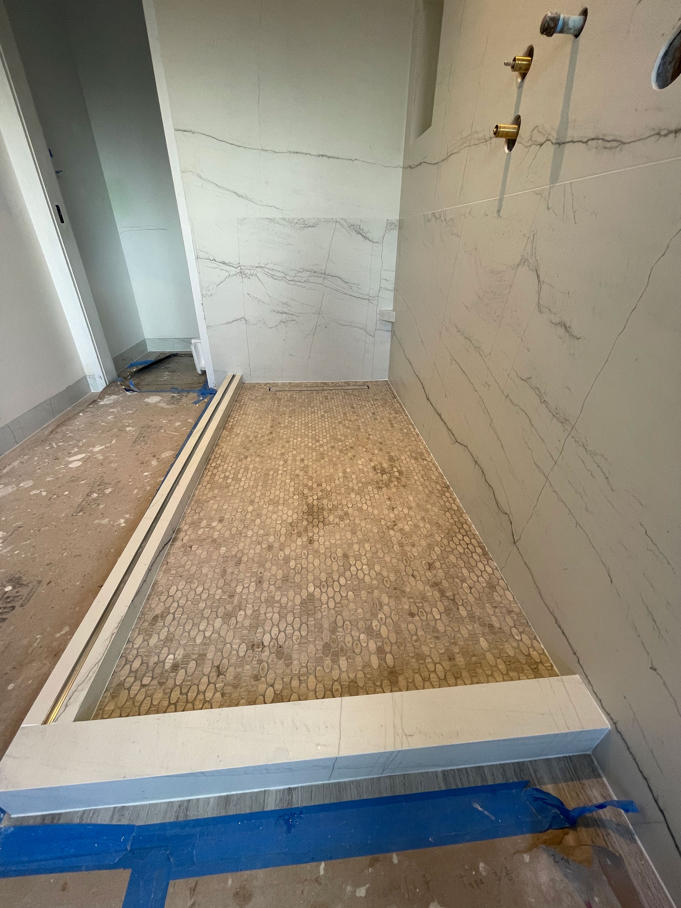 The installation process for both the kitchen and bathroom was handled with precision and care. In the kitchen, the quartz countertops were expertly installed to ensure seamless edges and a perfect fit with the cabinetry. The backsplash tiles were aligned meticulously to create a clean and continuous look. In the bathroom, the tile installation was carried out with attention to detail, ensuring even grout lines and a waterproof seal. The shower, vanity, and fixtures were all fitted to maintain a sleek, cohesive design that reflects the project's high standards.