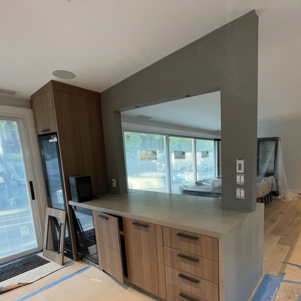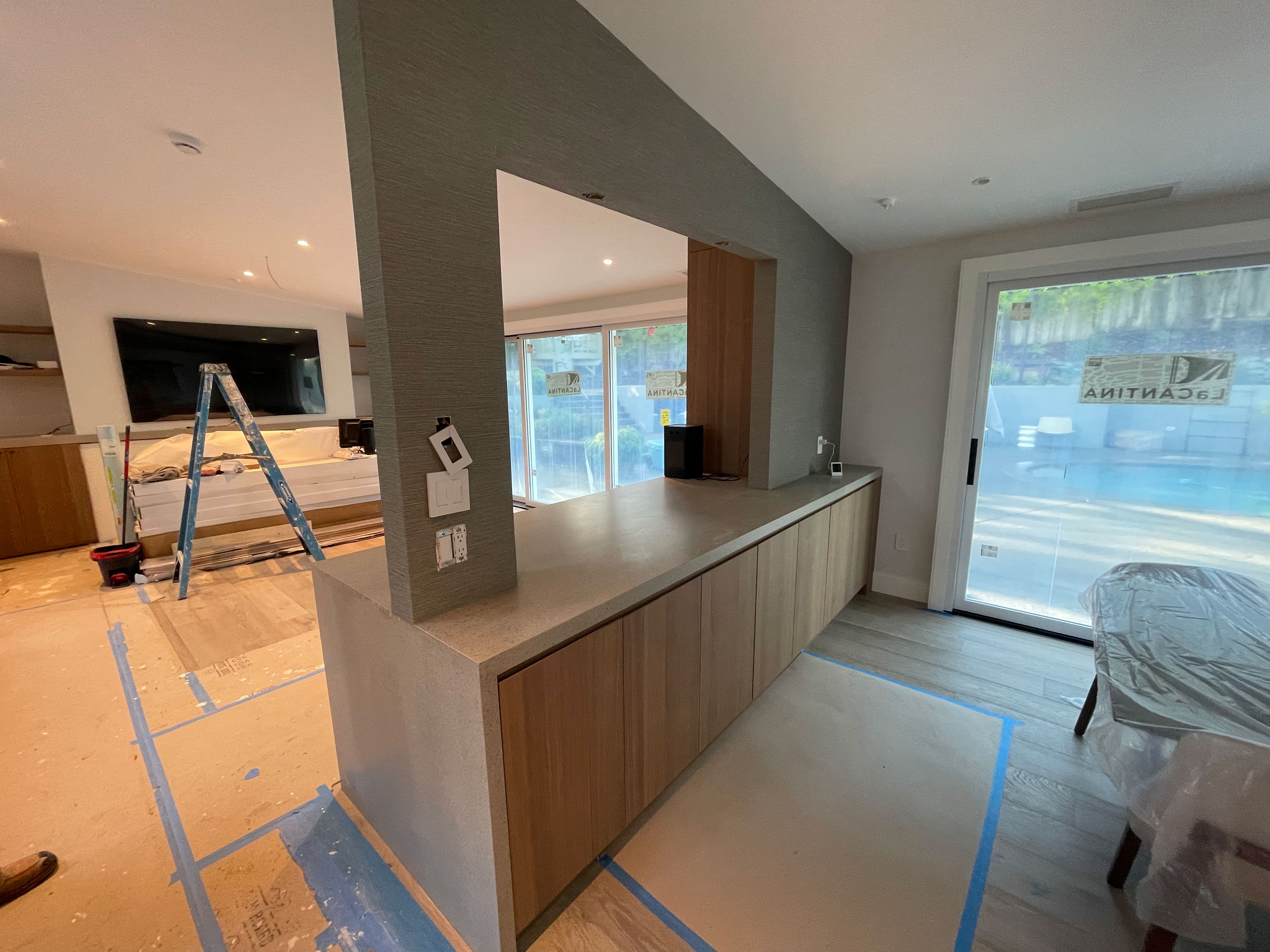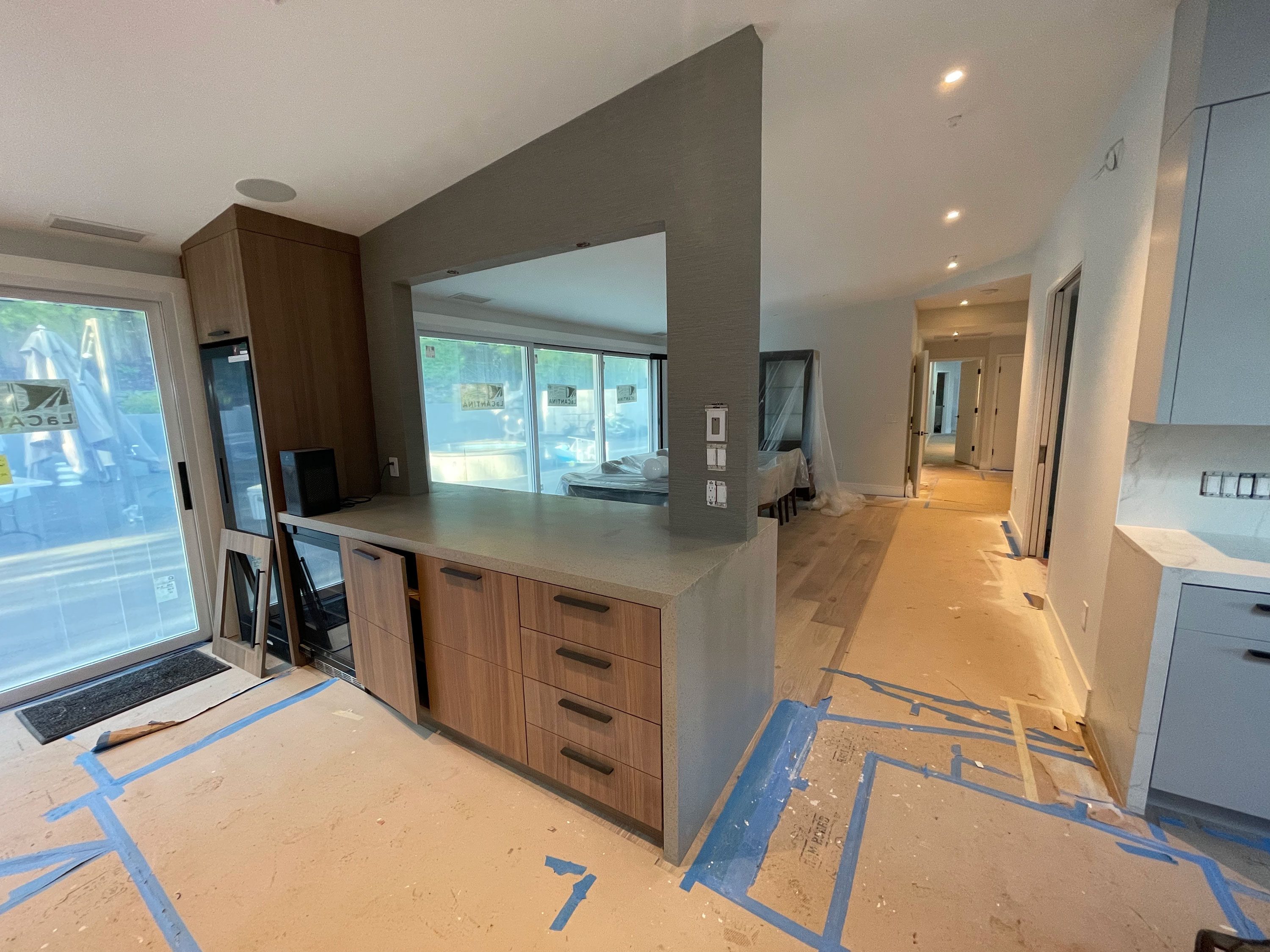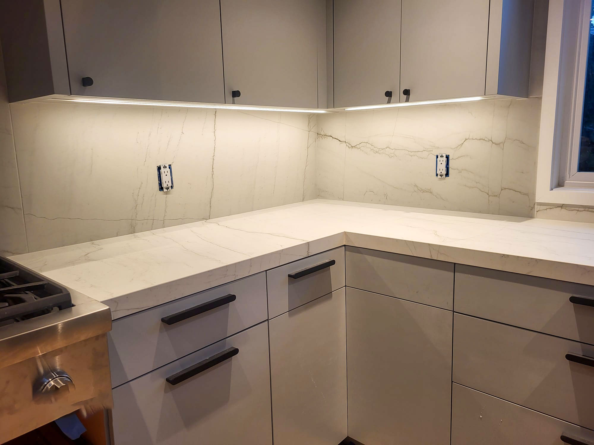 The installation process for both the kitchen and bathroom was handled with precision and care. In the kitchen, the quartz countertops were expertly installed to ensure seamless edges and a perfect fit with the cabinetry. The backsplash tiles were aligned meticulously to create a clean and continuous look. In the bathroom, the tile installation was carried out with attention to detail, ensuring even grout lines and a waterproof seal. The shower, vanity, and fixtures were all fitted to maintain a sleek, cohesive design that reflects the project's high standards.